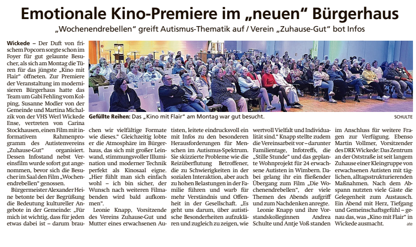 Wir danken allen Beteiligten – insbesondere der Gemeinde Wickede, der Kolpingfamilie und der VHS – für die wunderbare Zusammenarbeit und die Möglichkeit, das Thema Autismus an diesem besonderen Abend in den Mittelpunkt zu stellen.